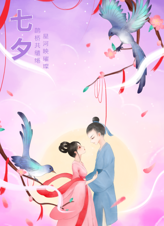 七夕節(jié),又稱七巧節(jié)、七姐節(jié)、女兒節(jié)、乞巧節(jié)等,是中國民間的傳統(tǒng)節(jié)日,由星宿崇拜衍化而來,為傳統(tǒng)意義上的七姐誕,因拜祭“七姐”活動(dòng)在七月七晩上舉行,故名“七夕”。七夕佳節(jié)是一個(gè)令人心動(dòng)的時(shí)刻,讓我們感受到愛的力量和浪漫的氛圍。七夕佳節(jié)象征著牽手相對(duì)的兩顆心,在這一天里,人們常常希望能與所愛之人共度美好時(shí)光。七夕佳節(jié)是一個(gè)美好的時(shí)刻,它為我們提供了一個(gè)特殊的機(jī)會(huì)來表達(dá)愛意。無論是通過一封情書、一束鮮花,還是一個(gè)溫馨的擁抱,用平平淡淡的方式去表達(dá)愛,都將成為珍貴的回憶和美好的開始。